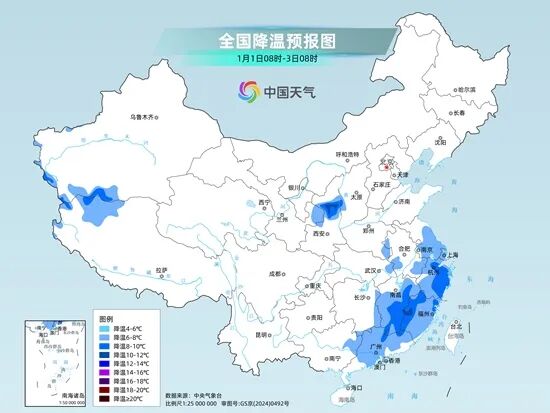 另据中国天气网1日消息:今明两天,寒潮继续南下,南方陆续迎来降温,合肥、南京、武汉、上海、杭州、南昌、长沙等不少地方还会度过今冬以来最冷的白天,江南大部最高气温可能不足10℃,华南将在15℃左右。
