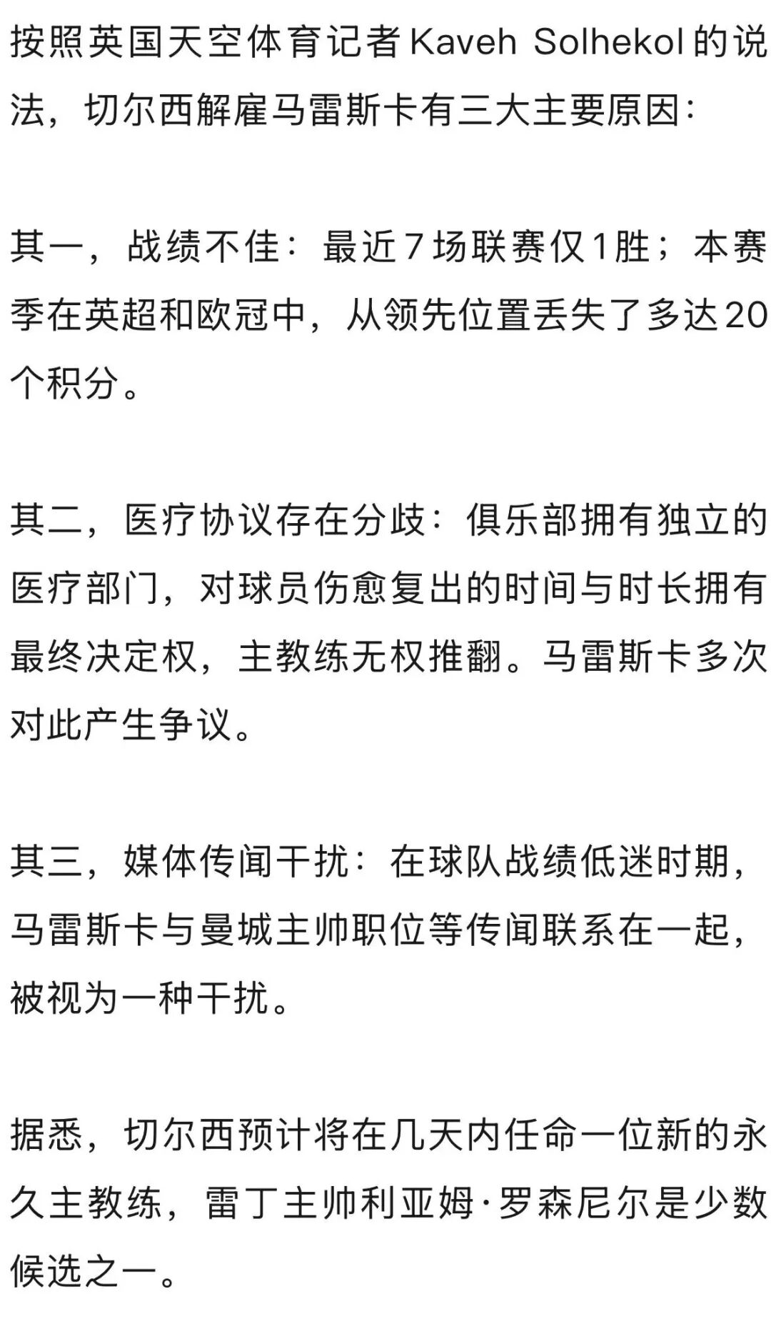 北京时间1月1日,切尔西在各大社交网站发布声明宣布,俱乐部与主教练恩佐·马雷斯卡即日起终止合作。