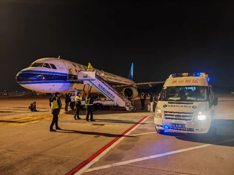 民航浙江空管分局联动机场安排救护车与医护人员。