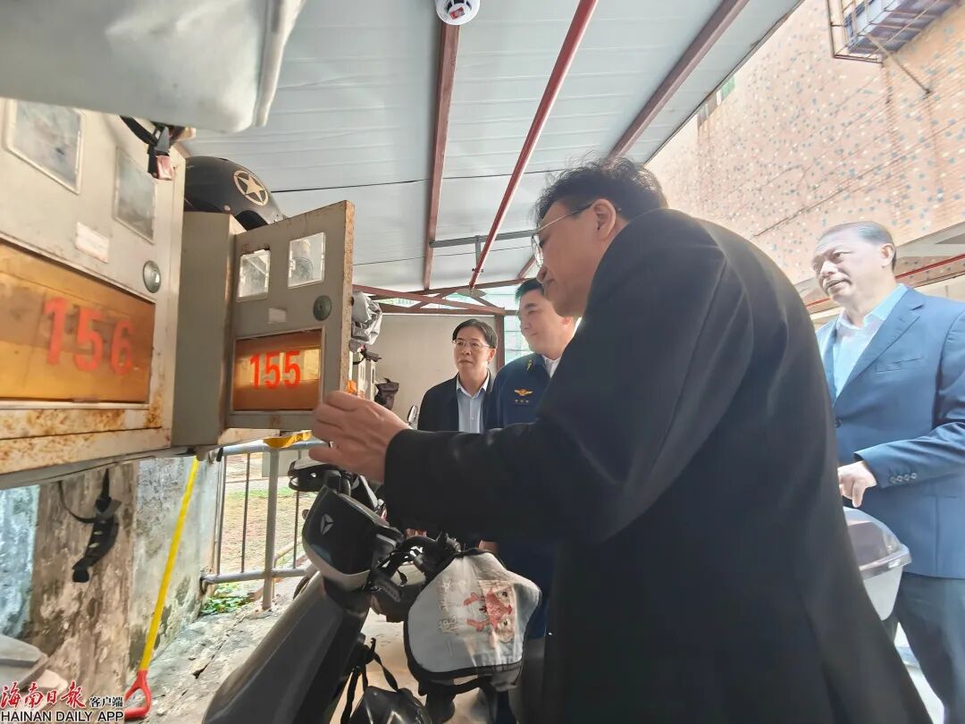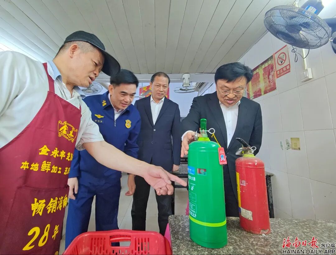 在美兰区海府街道大英社区,冯飞沿街察看老旧居民区建筑外立面改造工作,随机走进临街商铺检查灭火器配备、厨房煤气罐摆放等情况,询问商户消防安全基本知识,发现施工现场安全管理不到位,商铺用火用气用电存在隐患,电动自行车未按规定停放。他指出,要牢固树立“生命至上、安全第一”理念,坚决克服麻痹思想,压紧压实安全生产责任,聚焦老城区、老旧小区消防薄弱领域,紧盯“下店上宅”场所火灾高发关键环节,迅速开展安全隐患排查整治,确保人民群众欢乐平安祥和过节。要统筹好发展和安全,坚持整改与服务并重,提升安全生产监管质效。要加强电动自行车安全管理,坚决整治电动自行车“进楼入户”“人车同屋”“飞线充电”等突出问题,营造干净整洁、安全有序的城市环境秩序。