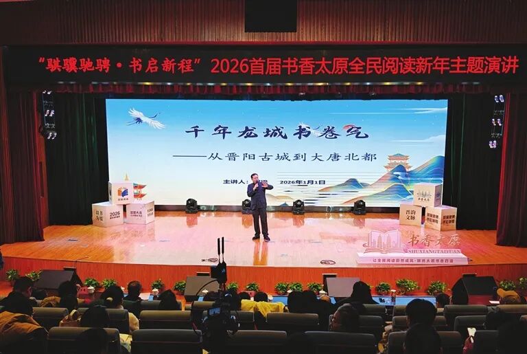 图为 1月1日,由市读书协会等单位主办的“骐骥驰骋·书启新程”2026年首届书香太原全民阅读新年主题演讲在太原市图书馆举行。