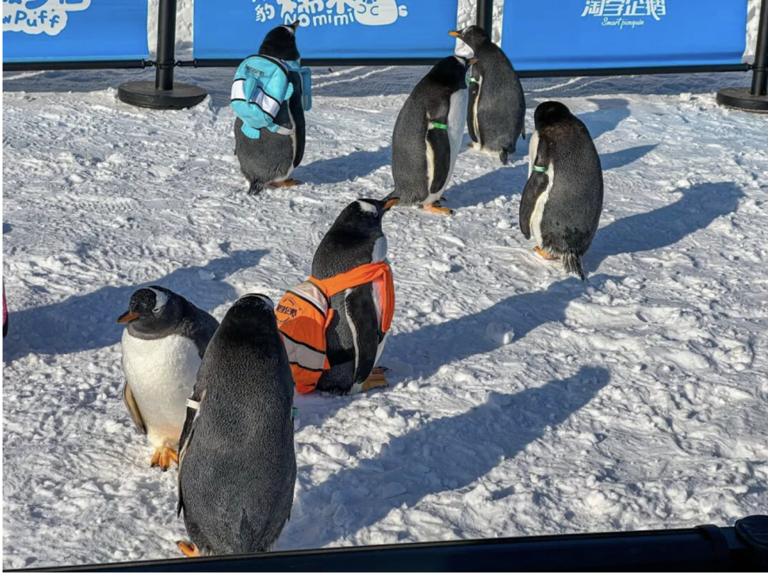 元旦中午时分,“淘学企鹅”带着满满的仪式感赶来赴约。这群自带“萌系滤镜”的小家伙,背着标志性的橙白小书包,迈着专属的小碎步,一摇一摆地穿过太阳岛雪博会的皑皑白雪时而东张西望,对身边的雪雕充满好奇,乖萌指数直接爆表。