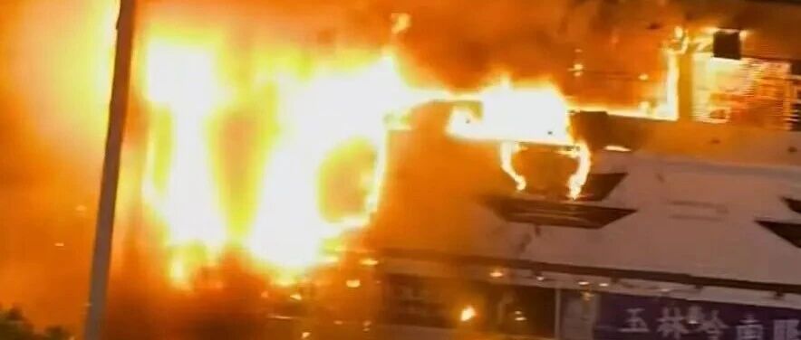 1月1日晚,广西玉林市玉林国际购物中心突发火情。