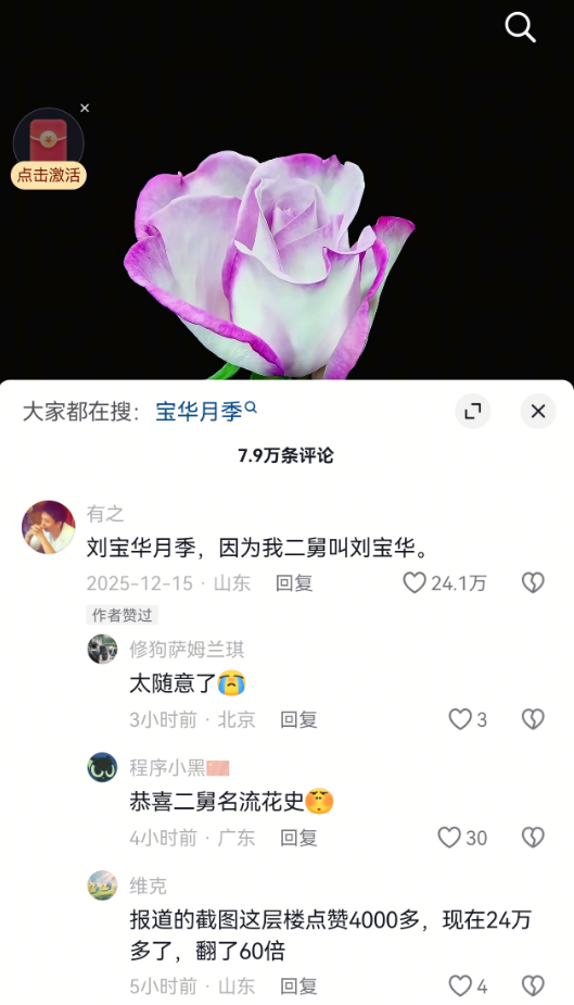近日,云南省农业科学院花卉研究所委托科普账号“植物眼”,为新培育出的白瓣镶粉紫边月季(4379-4)公开在线征名。在网友“整活”下,二舅“宝华”的名字走红。