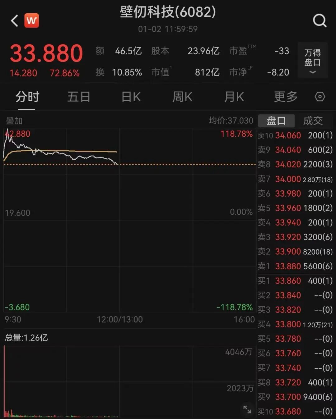 港股午间收盘,恒生指数涨2.18%,恒生科技指数涨3.38%。壁仞科技大涨超72%;华虹半导体涨9.89%,百度集团涨7.45%,三花智控涨6.37%。