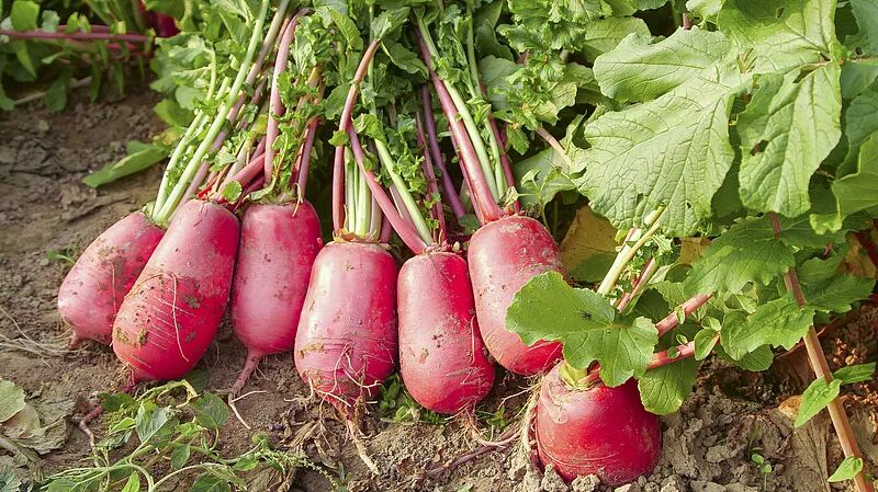 红皮萝卜,常见的有大红袍和东北胭脂红, 含有多种营养成分,特别是红萝卜的铁含量相对比白萝卜的铁含量还高,有助于补血。