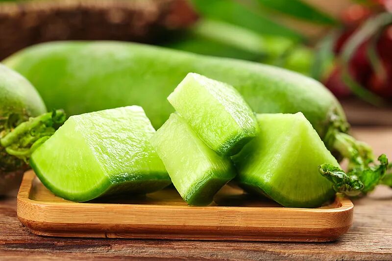 青萝卜有“水果萝卜”的美称,除直接吃外,还适合切成丝凉拌,搭配一些海蜇丝,既爽口又美味。