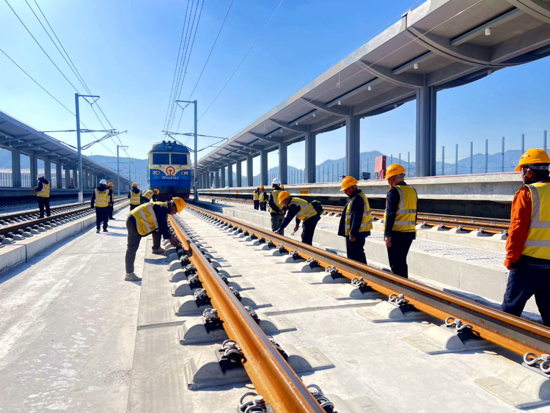 面对桥隧比高、作业面狭窄等挑战,项目建设者创新采用“推送拖拉法”施工工艺,配合紧凑型专用铺轨设备,实现了钢轨从运输到铺设的一次性精准推送。