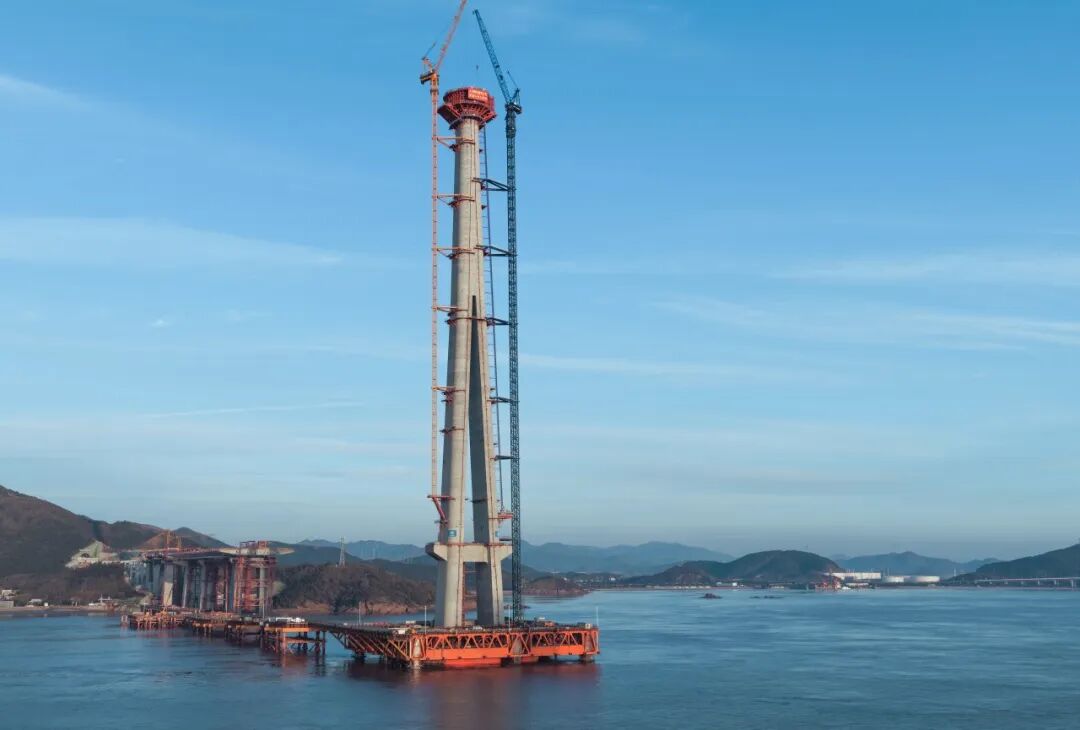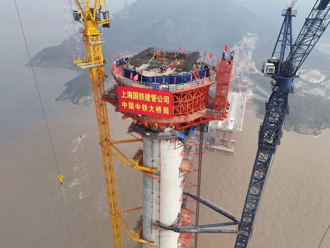 浙江日报讯:12月30日,随着最后一方混凝土从输送泵车中缓缓注入模板,由上海国铁建管公司建设管理、中铁上投牵头投资、中铁大桥院设计、中铁大桥局承建的甬舟铁路西堠门公铁两用大桥5号主塔封顶,工期比内控计划提前3个月,这也是甬舟铁路全线首座封顶的桥梁主塔。