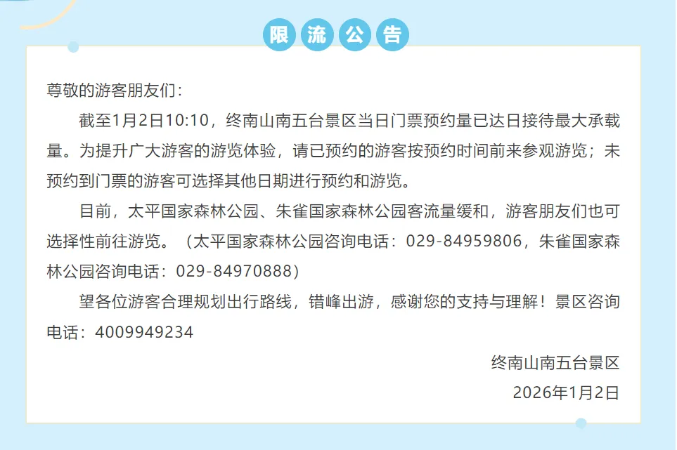 多个热门景区发布重要提醒
