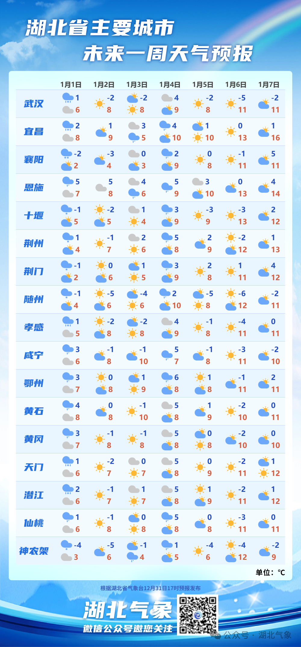 预计未来三天武汉市气温都比较低