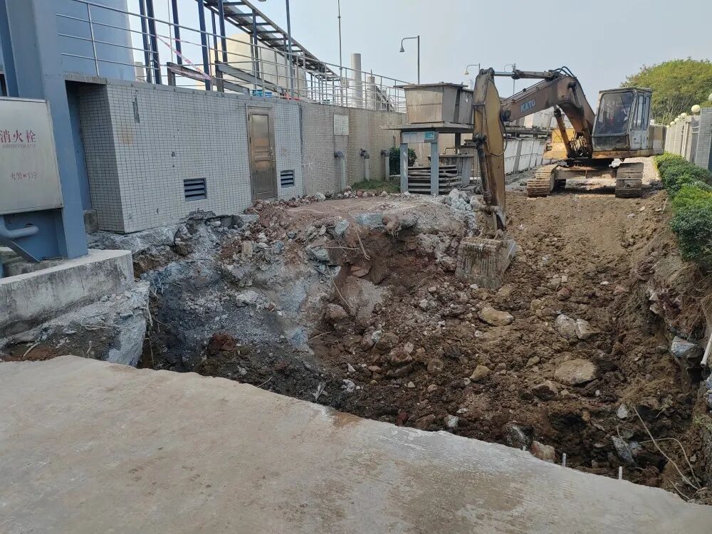 接到相关举报线索后,沙田生态环境分局牵头,联合水务中心、立沙岛综合事务中心、立沙岛消防组建专项执法组,自2025年12月30日起对该企业开展连续多日的全面细致检查。2026年1月1日,执法组调动挖掘机对举报人反映的偷排区域进行开挖,成功破开企业连夜封堵的下水管口,挖掘深度已达4米;针对河道疑似排污口开展溯源排查,目前各项调查取证工作正有序推进。