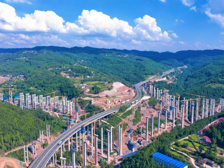 巴山蜀水间,诞生了世界第一埋深高速公路隧道——峨汉高速大峡谷隧道,世界第一高墩大桥——金阳河特大桥,世界最大跨度无推力组合拱桥——成渝中线高铁沱江特大桥;白鹤滩水电站创造6项世界第一,双江口水电站拥有世界已建和在建最大坝高,柯拉一期光伏电站是全球已建最大、海拔最高的水光互补电站,两河口混合式抽水蓄能电站是全球最大的混合式抽水蓄能项目……在建的西香高速公路元宝枢纽,要在大山“肚子”里修一座世所罕见的立交桥,将造就世界最大规模山区高速公路全地下互通。