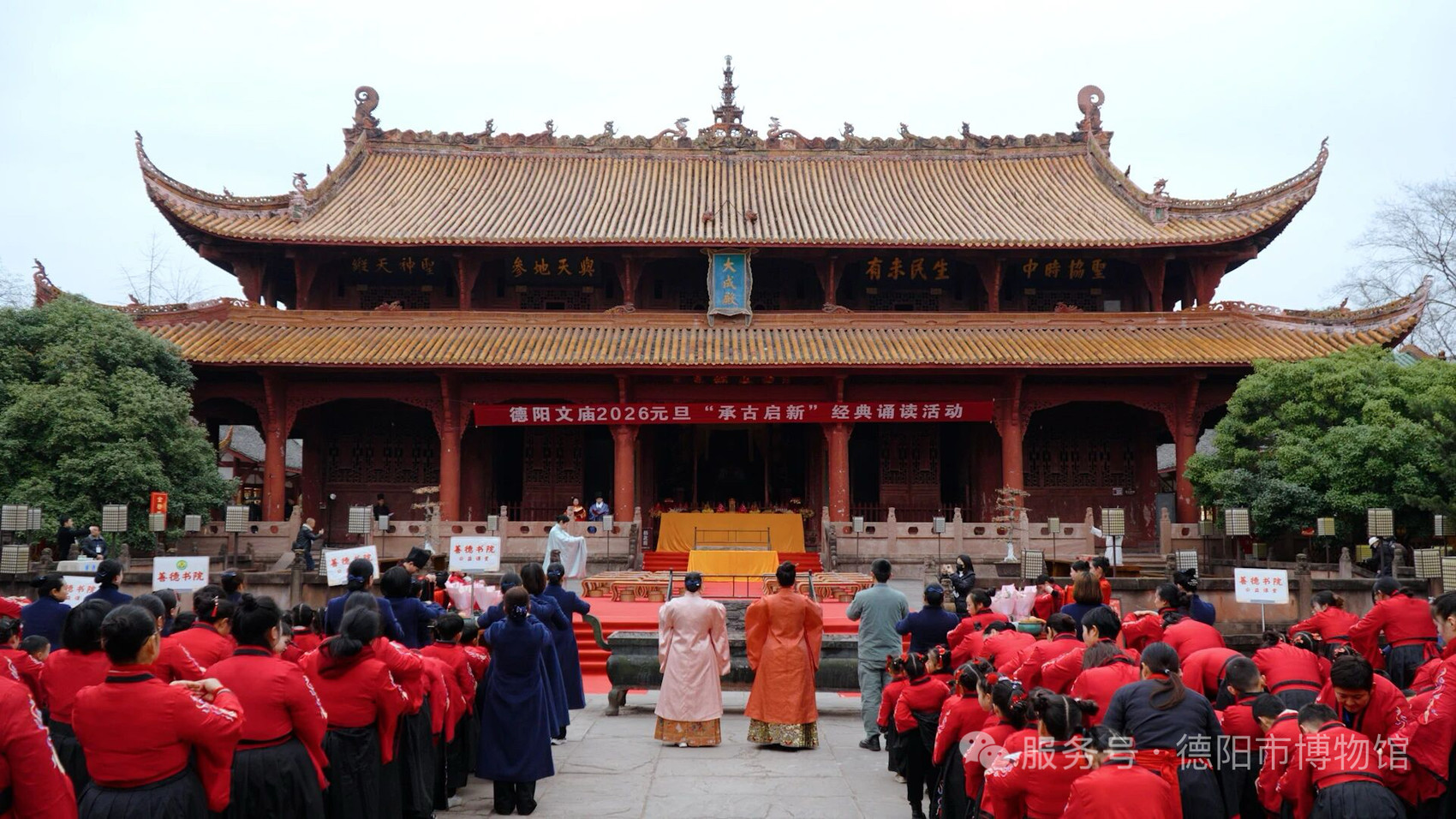 一元复始,万象更新。2026年1月1日,德阳文庙内雅乐悠扬、古韵绵长,一场以“承古启新・经典诵读”为主题的文化活动在此举行。活动聚焦传承经典、涵养品德、培育家风,吸引众多家庭踊跃参与,在庄重与温情中开启新年第一课。