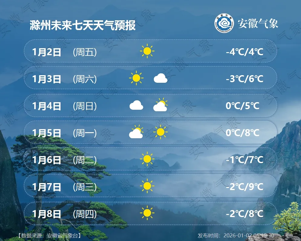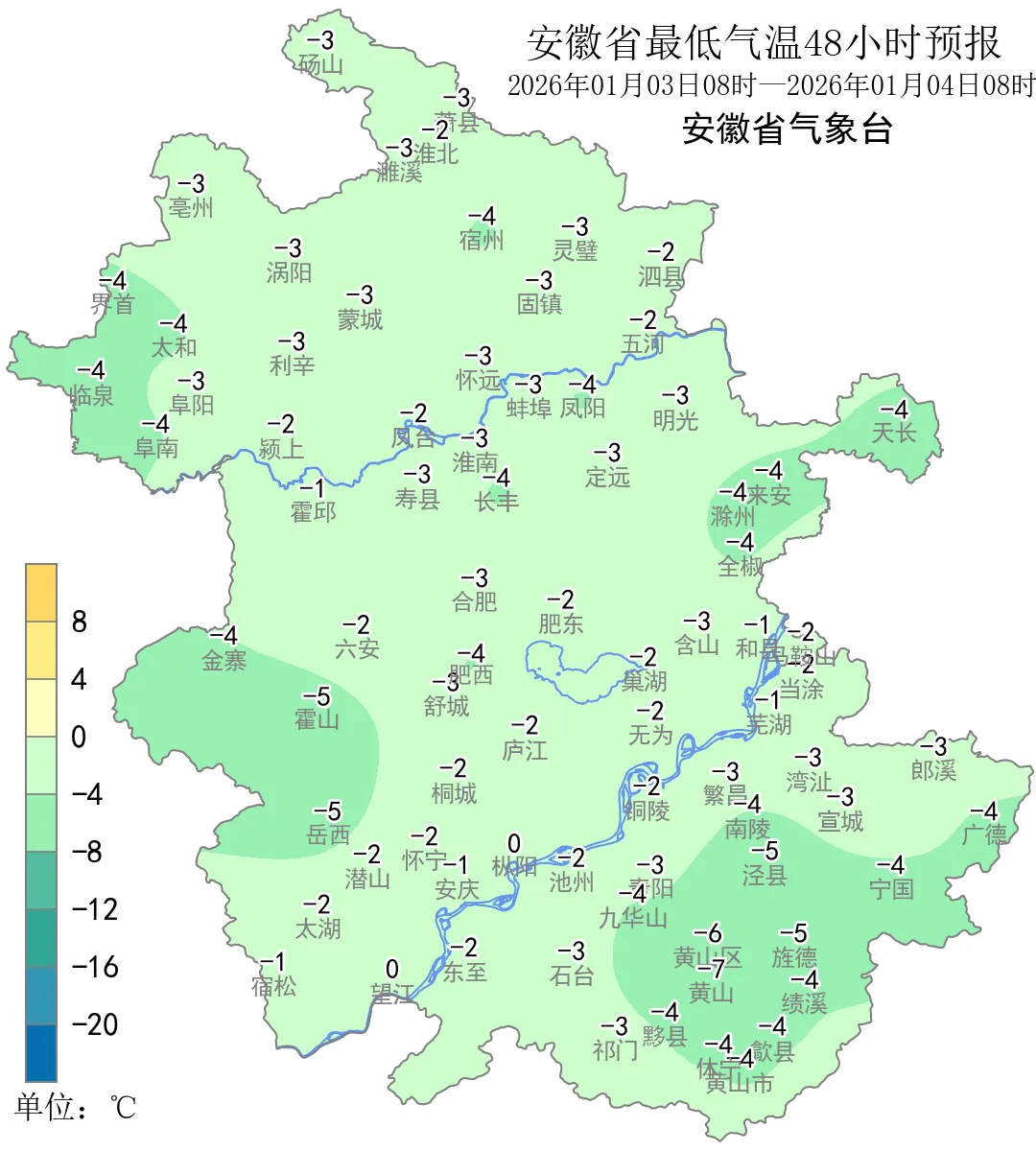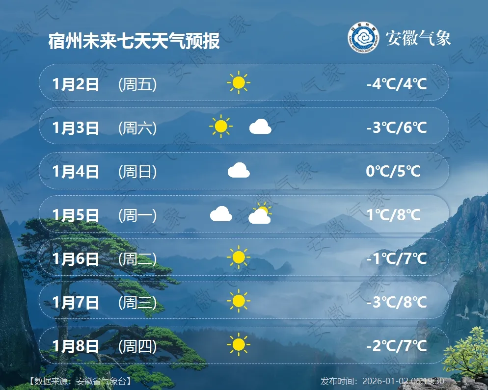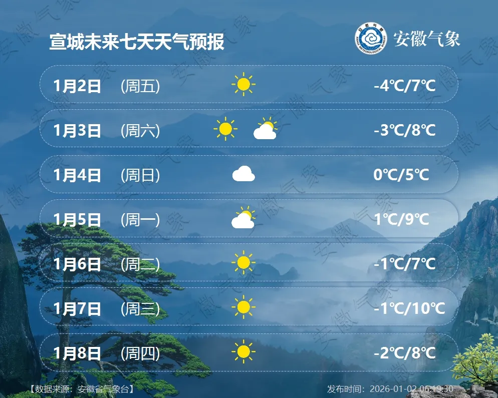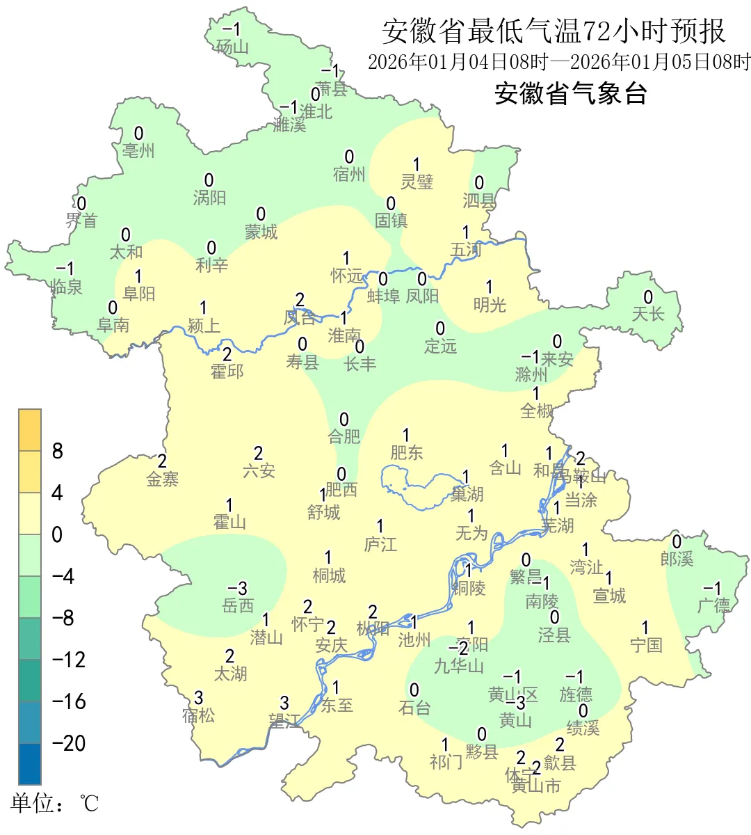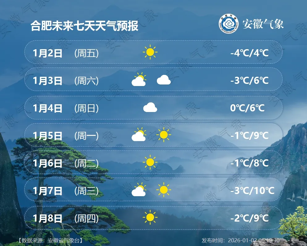 4日(周日):全省阴天,沿江江南南部有小雨,大别山区和皖南山区部分地区有雨夹雪或雪。