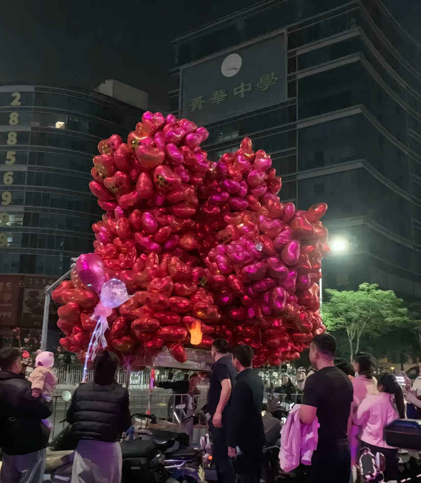 据深圳电视台《第一现场》报道,多名网友反映,2025年12月31日,在深圳龙岗,一名商贩一车的气球被路边一男子点燃。