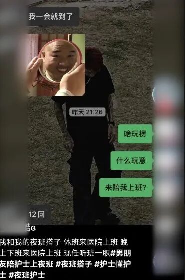 这名女子发文称,“我和我的夜班搭子,休班来医院上班,晚上下来来医院上班,现任听班(指协助值班医师完成诊疗工作)一职。”在视频中,一名手臂上刻满纹身的男子穿着便服,在护士站内帮她搬货、揉肩,在护士台上帮她写报告,还帮她配药给点滴瓶贴标签,等等。