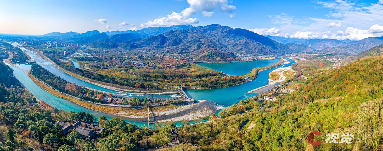 1月4日,都江堰天气晴朗,俯瞰秀丽的千年古堰都江堰。C视觉签约摄影师 马川江