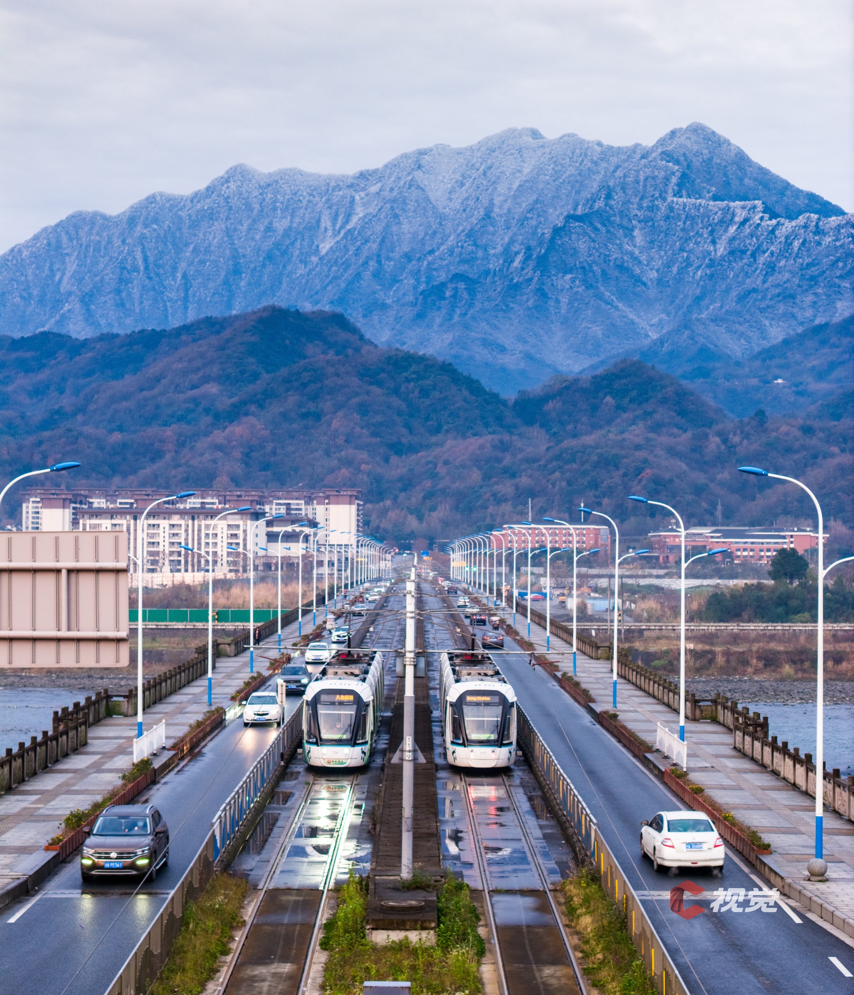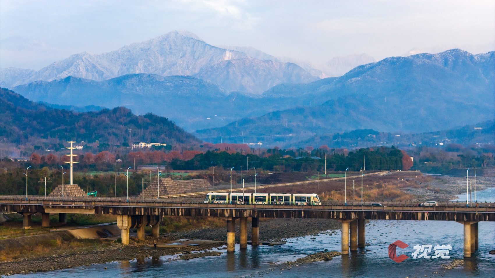 1月4日,都江堰天气晴朗,雪山映照下的都江堰熠熠生辉。C视觉签约摄影师 马川江