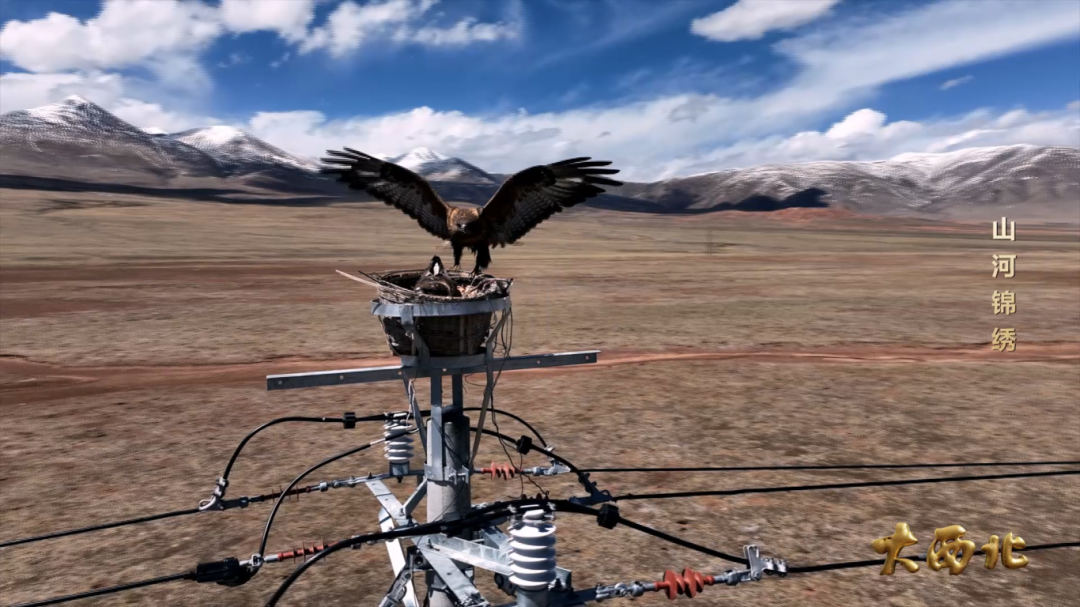 玉树,国家二级保护动物——大鵟,在人工搭建的鸟巢中哺育它们的后代。