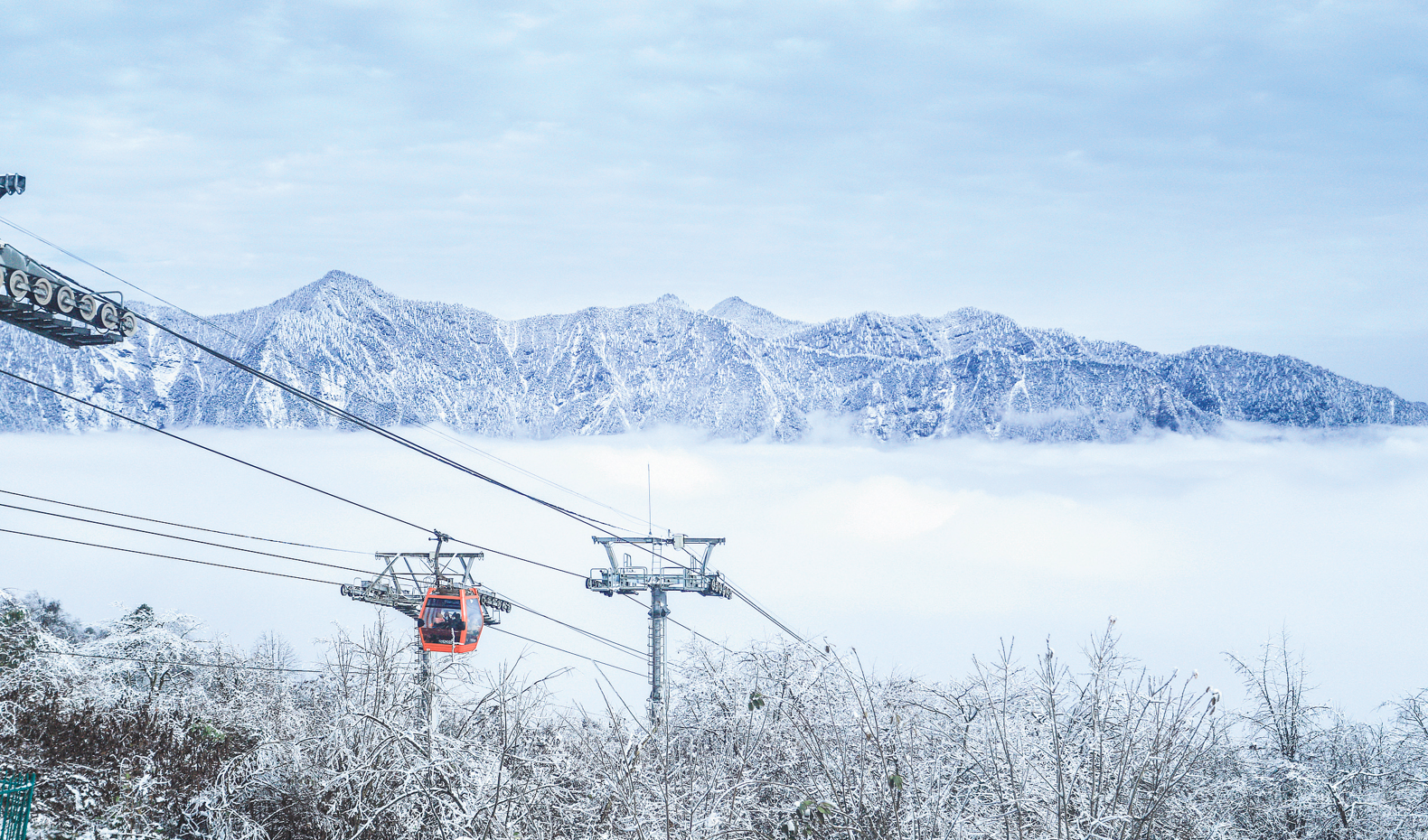 西岭雪山的高空景观同样令人沉醉。乘坐海拔落差达1000余米的索道上山,仿佛闯入云端秘境。海拔3250米的日月坪是观赏云海的绝佳位置,在这里漫步,脚下是厚厚的积雪,身旁是翻滚的云雾,仿佛伸手就能触摸到天空。若是运气绝佳,还能遇见罕见的“佛光”奇观,光环映照下的身影与雪山云海相映,构成一幅奇幻的画面。