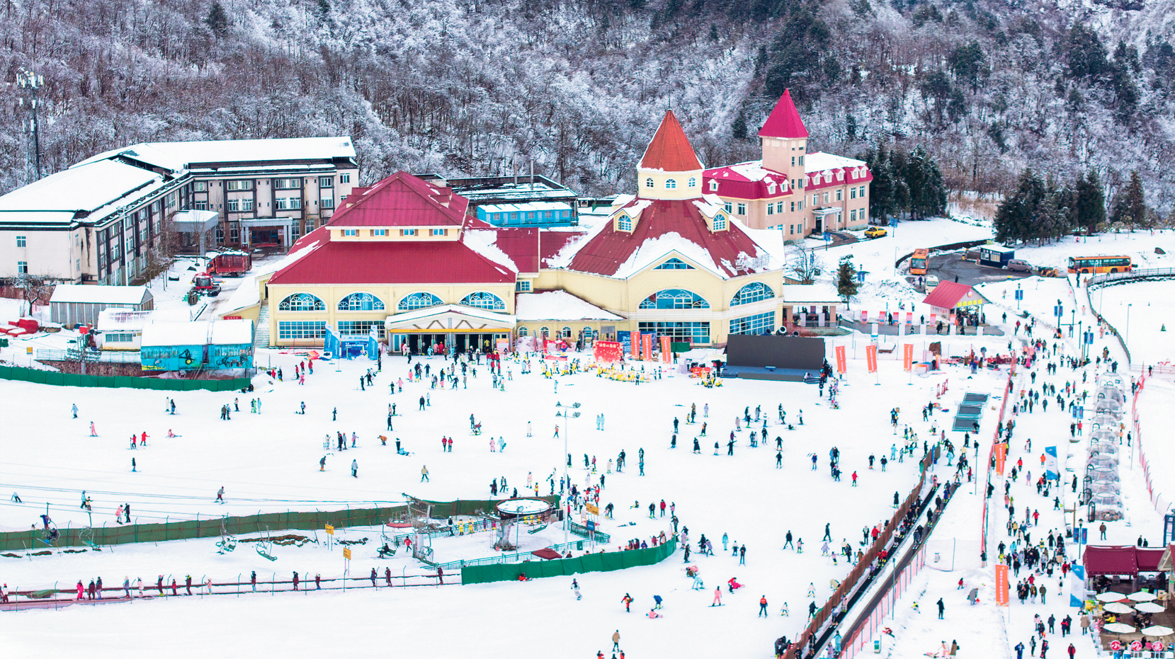 西岭雪山滑雪场游人如织