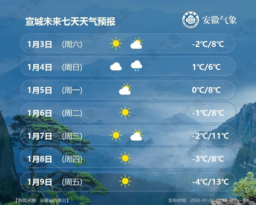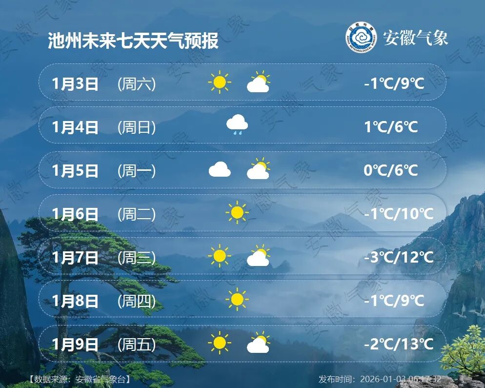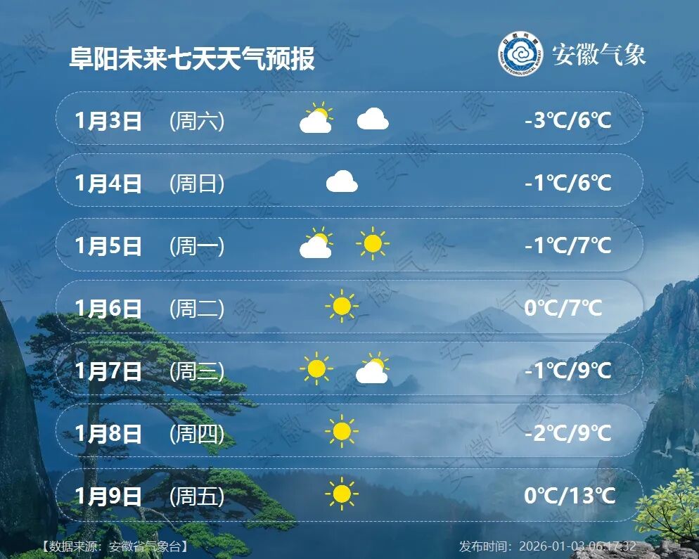 据安徽省气象台预报,今天白天到明天早晨我省江北阴天转多云,沿江江南阴天。淮河以北北部、大别山区和沿江江南有小雨,其中山区局部有雨夹雪或雪。