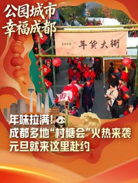 元旦假期,成都的热闹藏在乡镇村头的“村糖会”里。温江文庙广场上锣鼓正响,青白江城厢的巷陌间人潮涌动,天府农博园的田埂上笑声不断。一场覆盖23个区(市)县、包含70余场活动的“村糖会”甜蜜开席。
