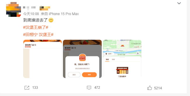 内容来源:@汉堡王中国、@田栩宁_、新浪微博
