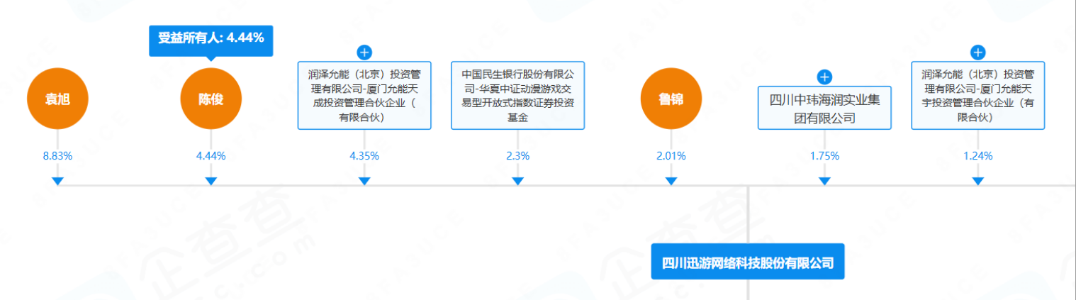 企查查显示,袁旭为当前持股比例最高的单一股东,持有公司1793.61万股股份,占总股本8.83%。公开信息显示,袁旭,1984年5月生,四川雅安人。14岁走上创业之路,高中毕业以优异成绩考入北大计算机系,一年后休学自主创业。2006年带领团队进入互联网加速市场,2011年至2022年任四川迅游网络科技有限公司总裁。现任迅游科技董事、西藏速沣创业投资有限责任公司执行董事。