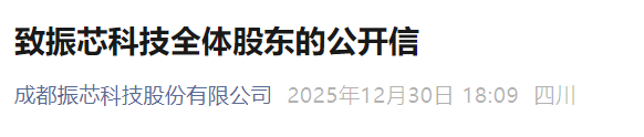 2025年12月30日晚,振芯科技通过官方微信公众号发布了一封《致振芯科技全体股东的公开信》。这封由公司董事长谢俊、副董事长徐进、董事柏杰联合署名的1600余字长信,将矛头直指公司实际控制人何燕,指控其非但没有为振芯科技发展做出过任何贡献,反而因其个人问题给振芯科技过去和现在造成巨大障碍,称其可能“触碰行业准入红线”。