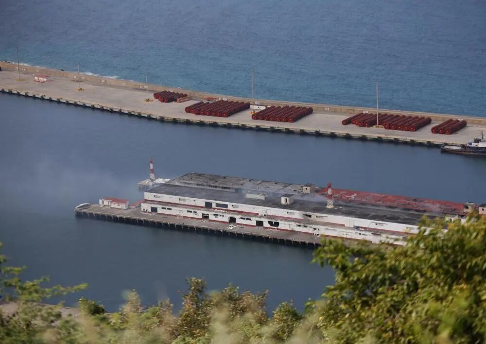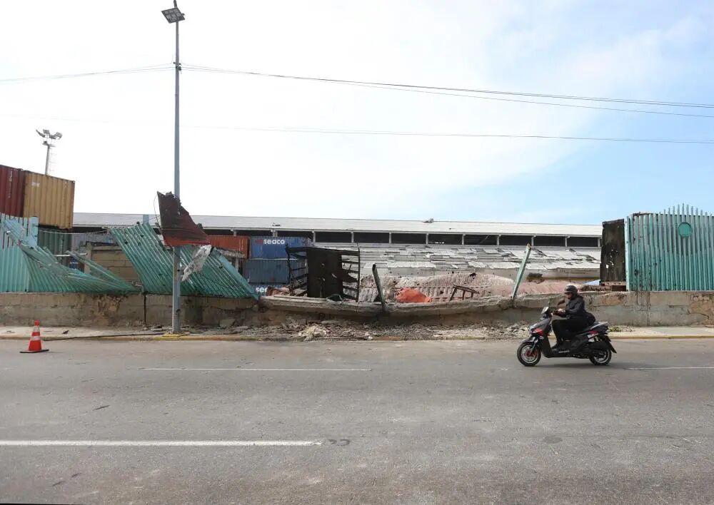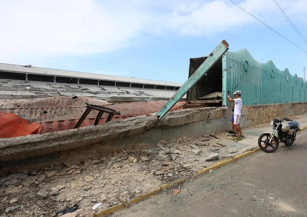 这是1月3日在委内瑞拉拉瓜伊拉港拍摄的空袭造成的建筑残骸。