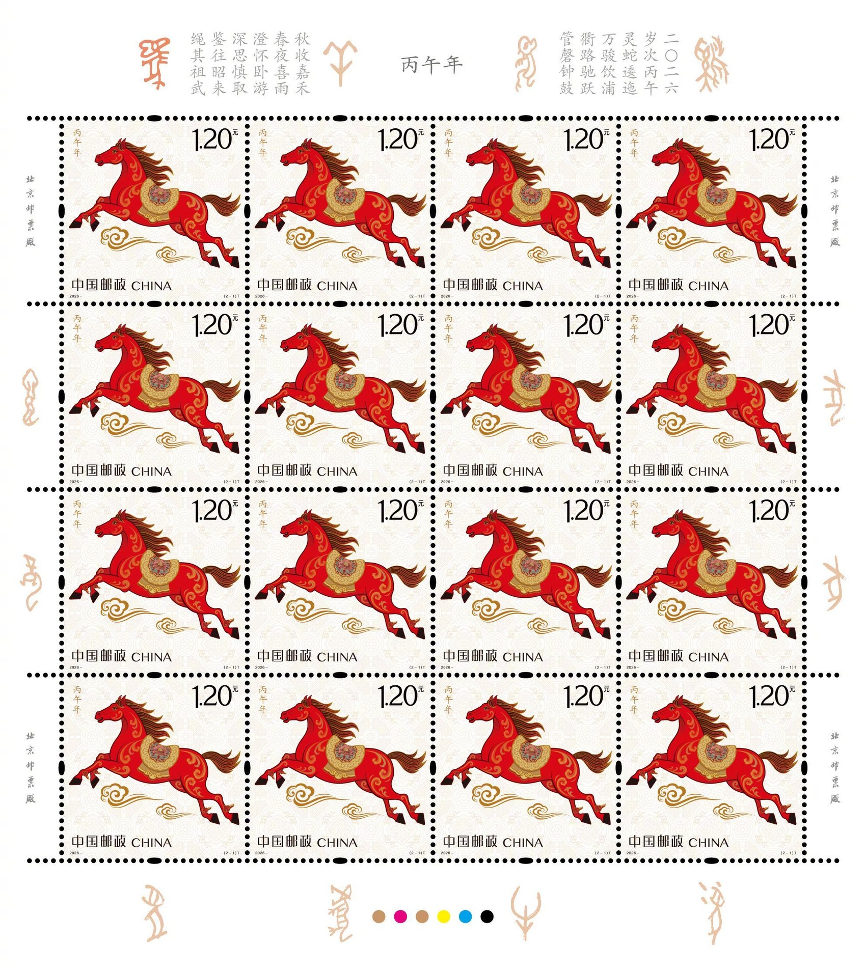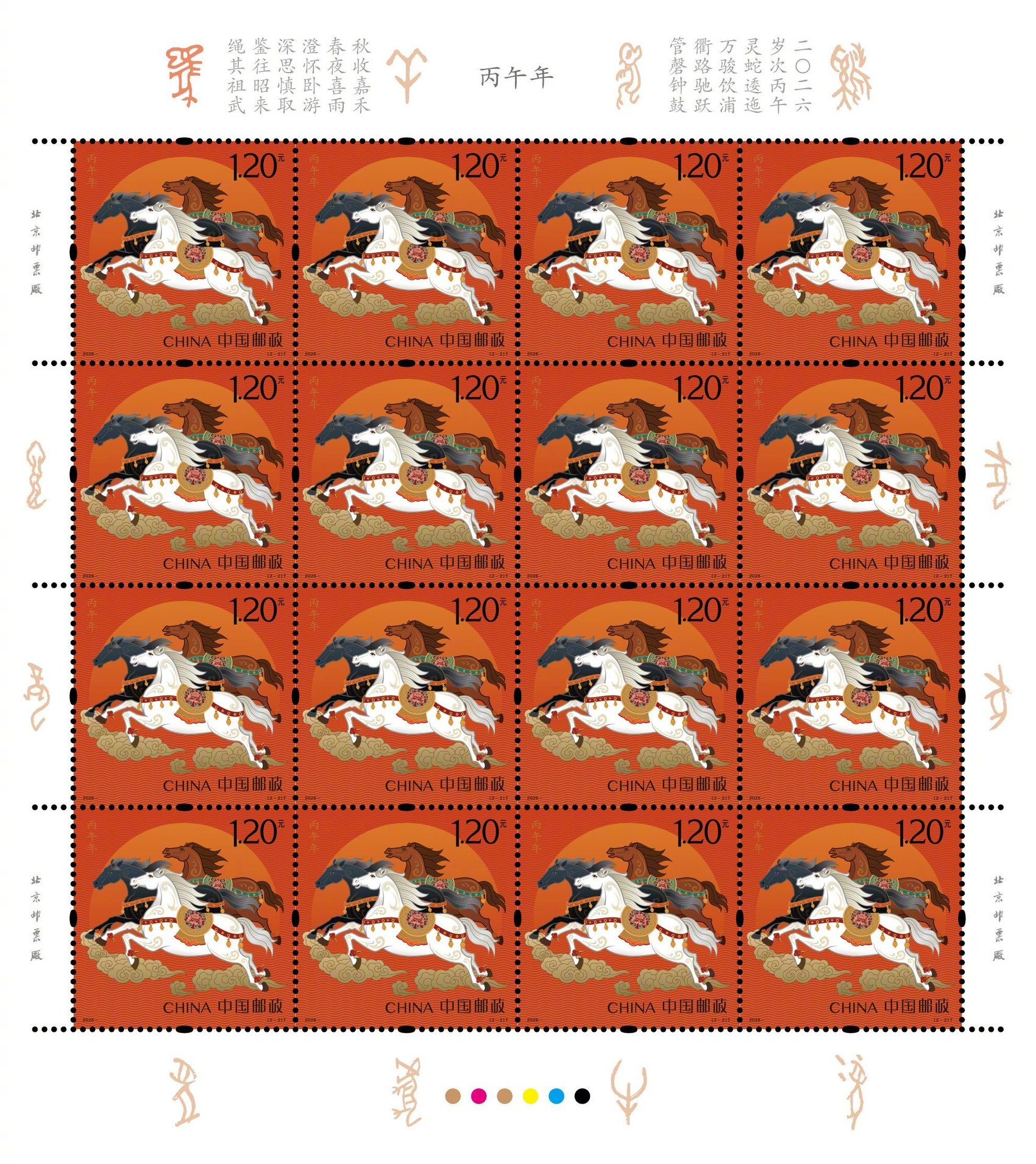2026年《丙午年》特种邮票今日正式首发。一枚名为《驰跃宏图》,彰显力量;一枚名为《万骏臻福》,体现温情。整套邮票设计线条灵动,骏马姿态昂扬。