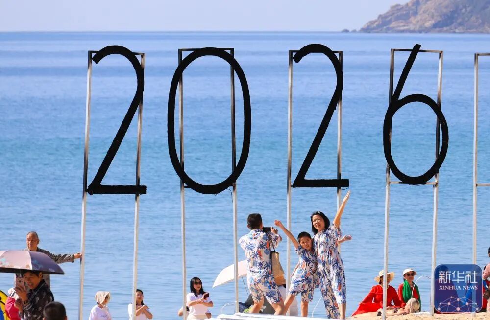 1月1日,游客在海南省三亚市大东海旅游区拍照。新华社发(李学仕 摄)