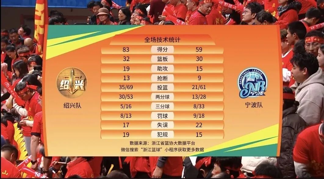 本场比赛后,绍兴队的战绩为11胜9负积31分,宁波队的战绩为7胜12负积26分。