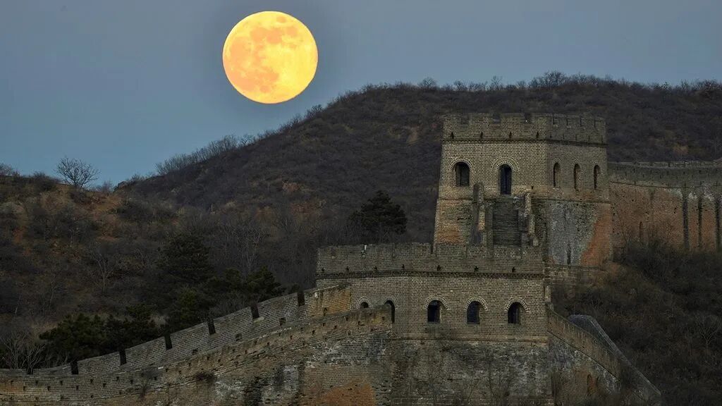“超级月亮”现身金山岭长城夜空