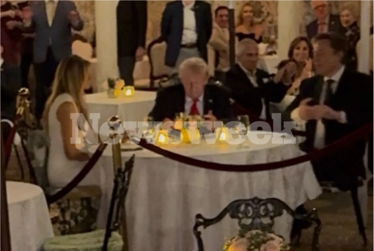 特朗普与马斯克(右)在海湖庄园用餐。图源:《新闻周刊》