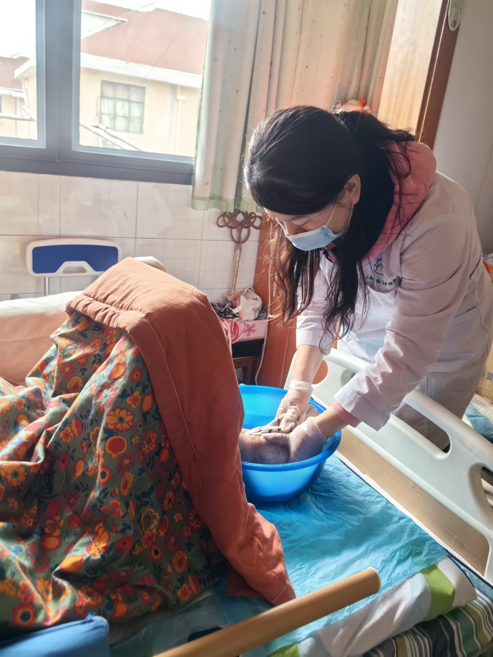 2016年,丈夫意外离世不久,她带着11个月大的孩子和婆婆来到上海打拼。初到陌生的城市,她辗转于物流公司和快餐店,只为寻一个能立足的生计。“能缴社保,孩子将来能上学。”这个朴素的念头,让她注意到了长护险护理员的培训公告。经过系统培训和严格考试,她顺利加入上海逸乐护理站,成为上海第一批长护险护理员。