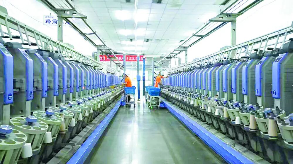 河北吉藁化纤有限责任公司纺纱车间自动化生产线。