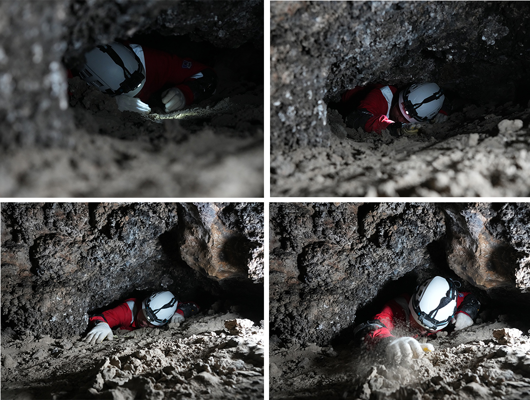 2025年12月,航天员在洞穴训练中艰难爬过狭窄通道。