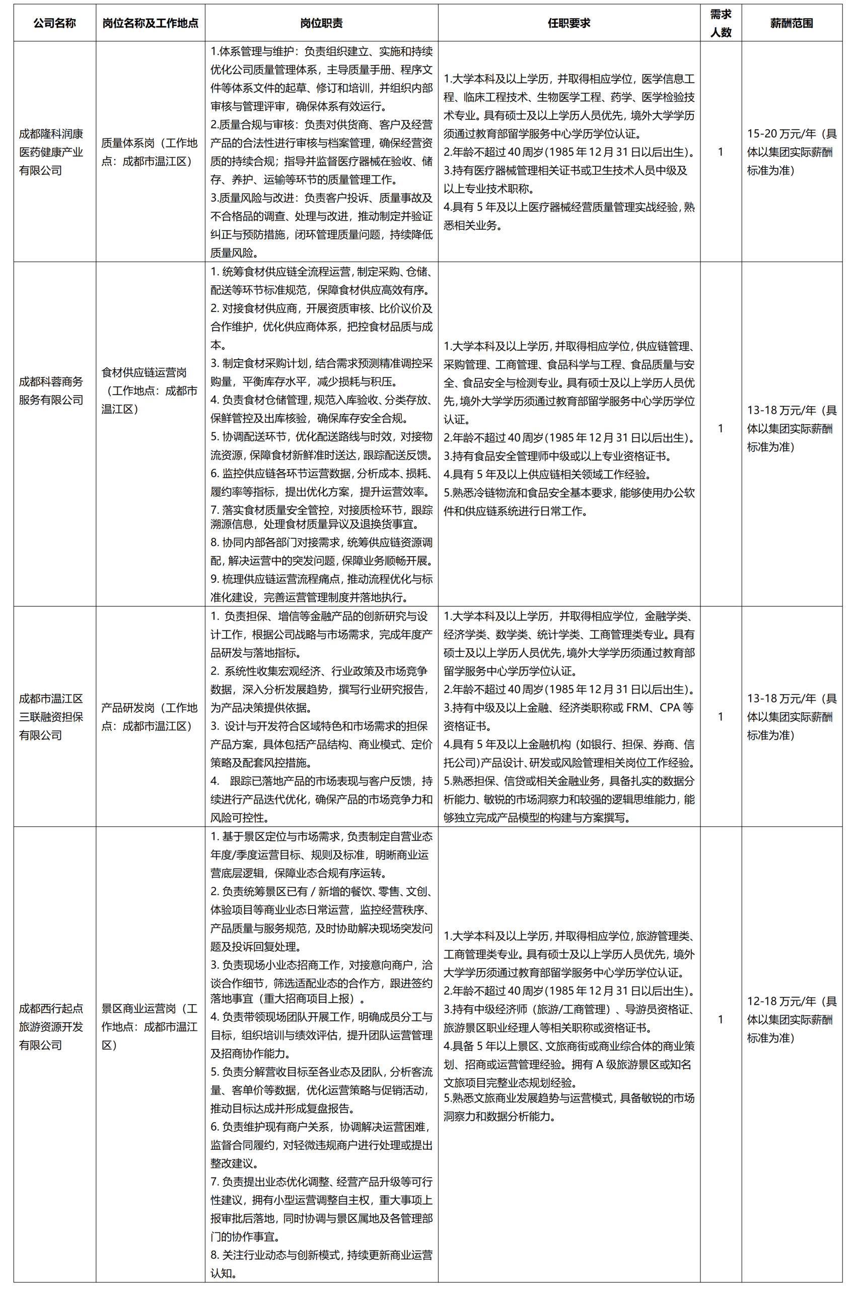 招聘企业:成都隆科城乡发展集团有限公司