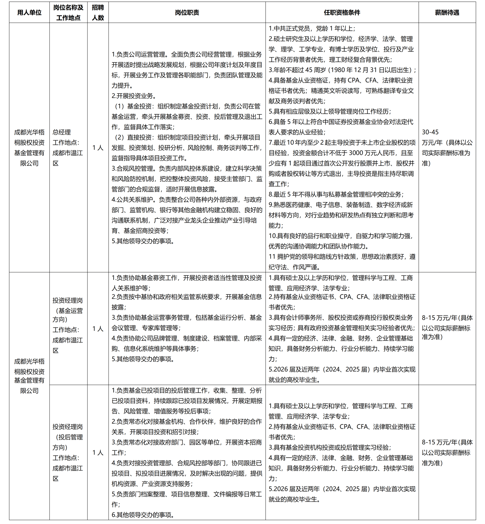 招聘企业:成都光华开源资本管理有限责任公司