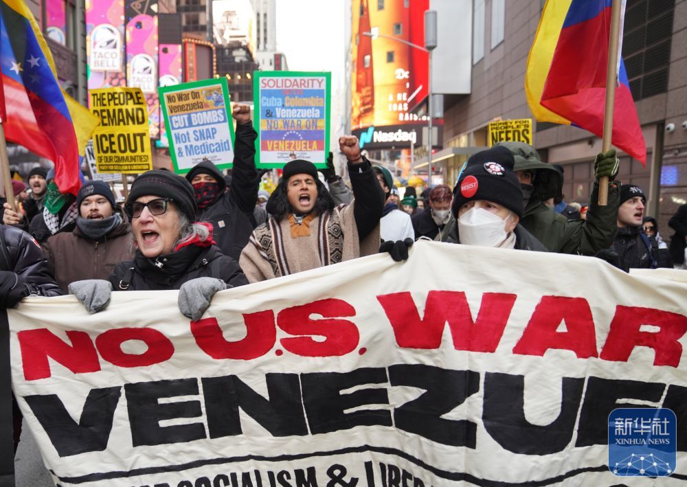 1月3日,近千名民众在美国纽约举行集会游行,抗议美国对委内瑞拉实施军事打击。