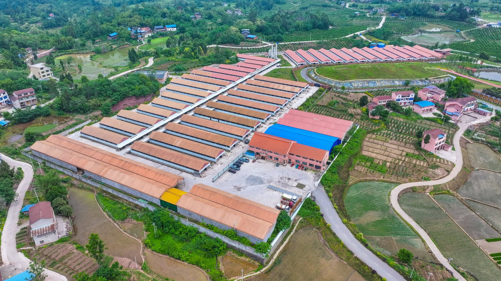 航拍广安市广安区石笋镇龙岩村万头湖羊养殖基地。张雅棋 摄