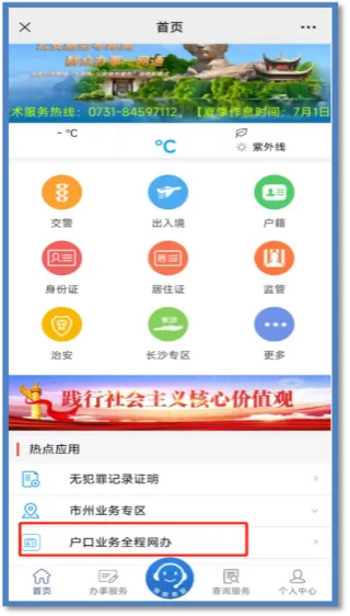 湖南户籍居民可微信关注“湖南公安服务平台”公众号,注册并实人认证登录,点击“微警务”,进入平台首页,在热点应用栏中选择“户口业务全程网办”,在“我要办理”菜单中选择要申办的业务类型,阅读网办须知,填写相关信息,拍照上传证明材料,提交办件申请。