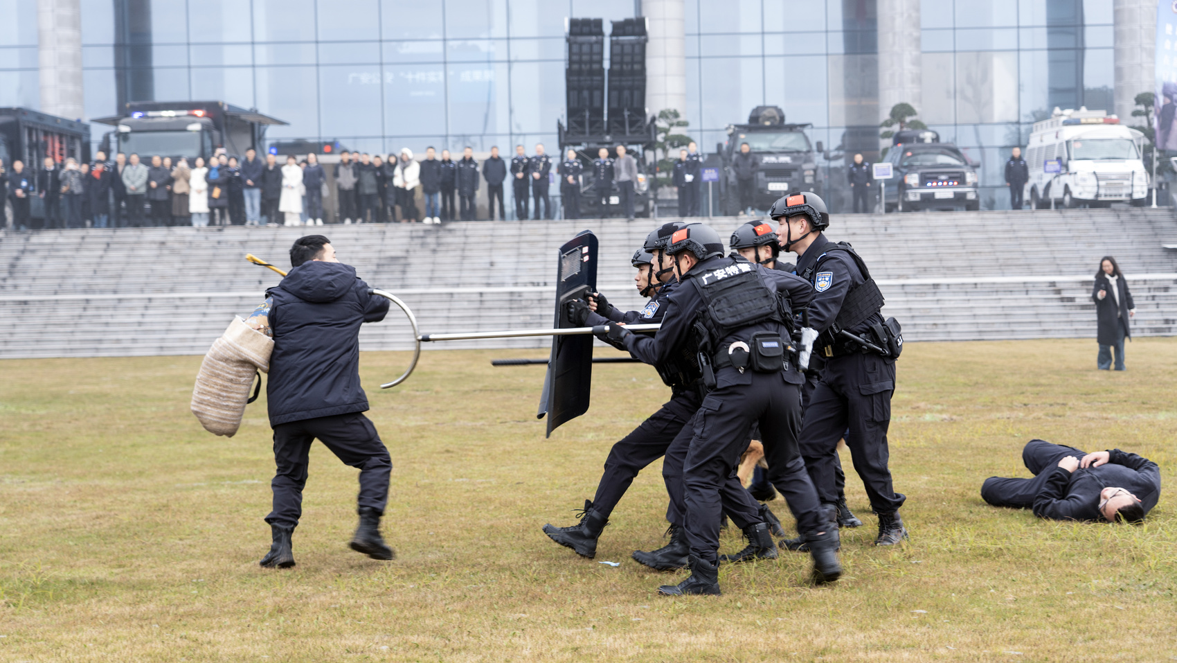 在展示环节,无人机编队穿越障碍、特种车辆与装备静态展示、警犬方阵进行搜毒扑咬等高水准实战演练,生动展示了广安公安在科技兴警与实战练兵方面取得的扎实成效,呈现出维护社会治安的硬核实力。