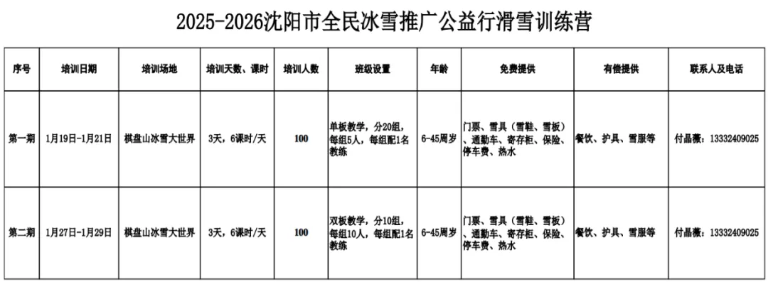 培训地点为棋盘山冰雪大世界,训练营将为学员购买意外伤害保险,每名完成培训的学员还将获得由沈阳市体育局颁发的结业证书。