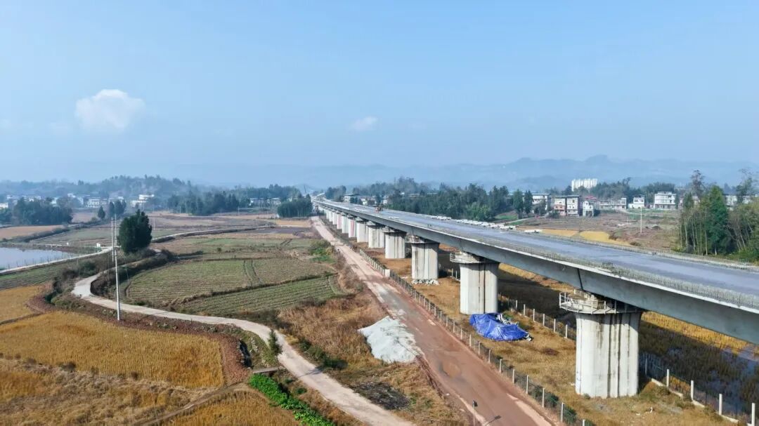 目前,除天府站外,全线7座新建车站施工现场也热火朝天。2025年12月底,乐至站完成了主体结构施工,转入装饰装修与设备安装阶段;渠县北站完成屋面钢网架安装,开始转向站房金属屋面、室内外装饰装修施工。截至目前,7座车站均处于全面施工阶段,整体建设按计划推进。