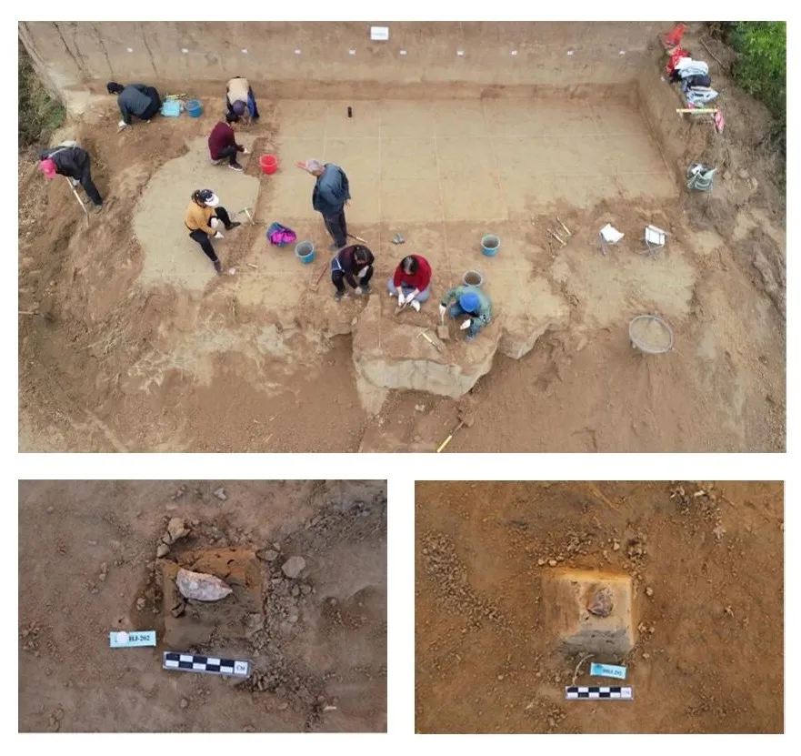 后涧遗址发掘场景及出土遗物