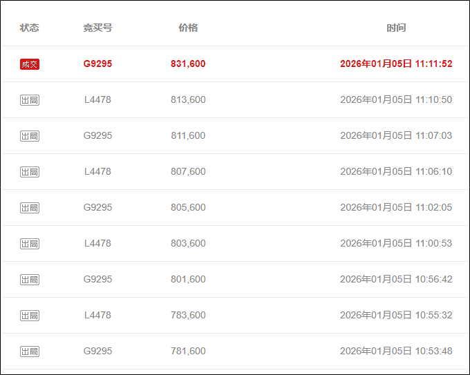 1月5日11时16分52秒,拍卖结束,拍下价83.16万元。